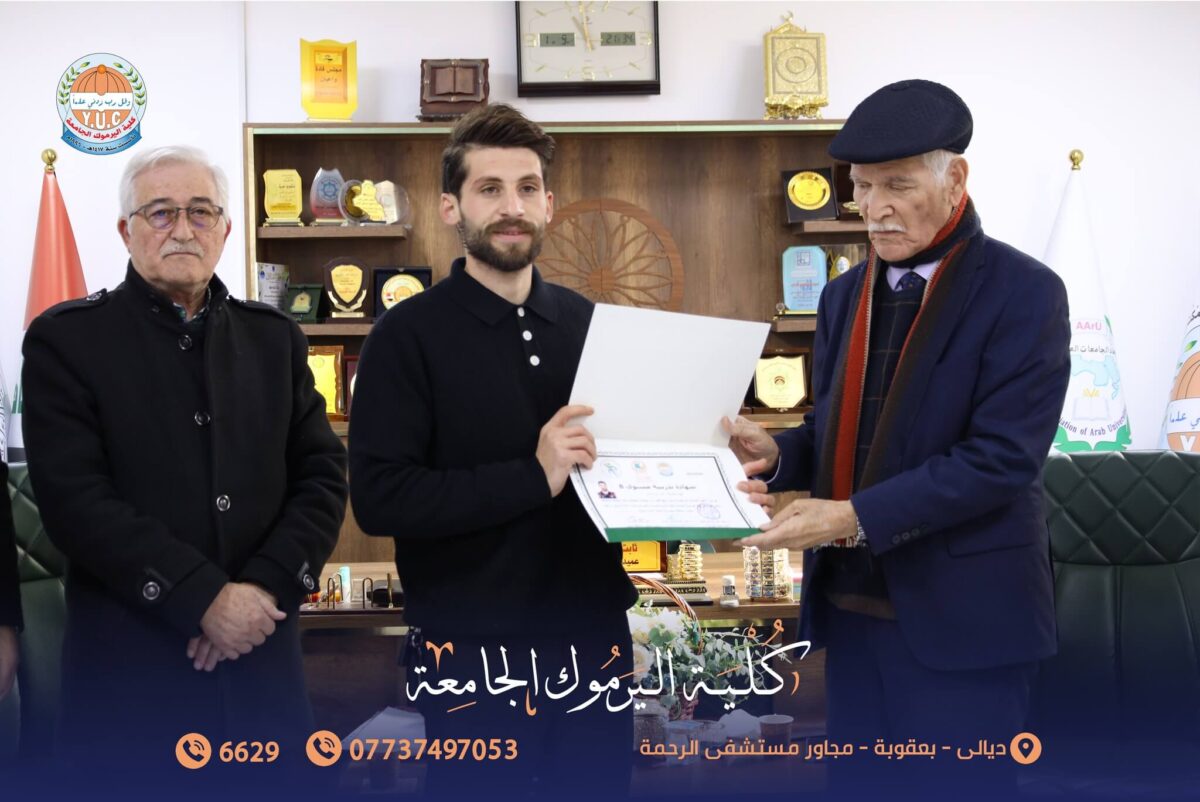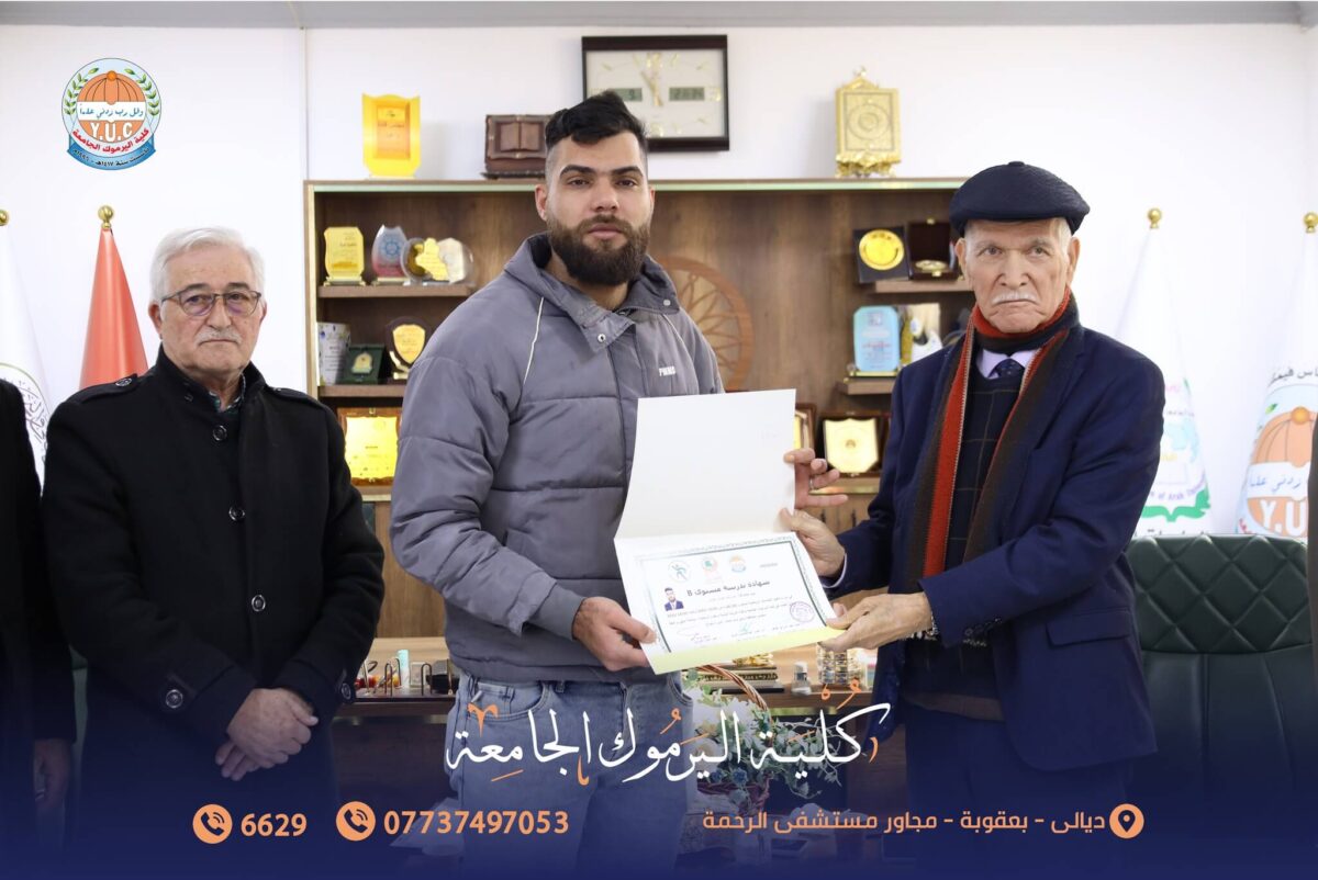 20/01/2026اختتام الدورة التدريبية بعنوان ( تأهيل الاصابات الرياضية ) فئة B التي اقامتها كلية اليرموك الجامعة (قسم التربية البدنية وعلوم الرياضة) وكلية التربية والبدنية وعلوم الرياضة بجامعة ديالى وبرعاية مجلس محافظة ديالى وفي ختام الدورة تم توزيع شهادات المشاركة على المشتركين